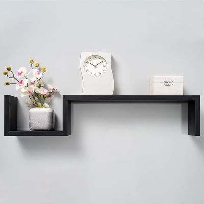 Design en forme de S Décor noir Étagères flottantes en bois Étagères murales pour chambre